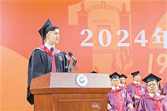 ■广州中医药大学毕业典礼上,中医学专业本科生、来自巴基斯坦的简雅山用流利的普通话和粤语,对学校和学院表示衷心感谢,引全场欢呼。