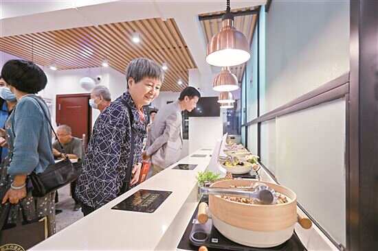 ■大部分社工扎根社区,服务对象包括儿童、青少年、老年人等。图为越秀区洪桥街幸福食堂内,一市民正在选购餐食。(资料图)