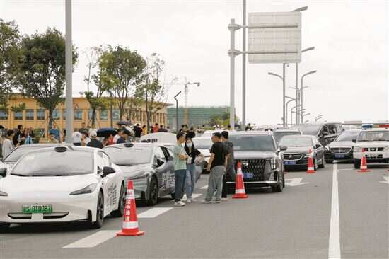 ■6月30日下午3时前,等待深中通道通车的车辆和市民。