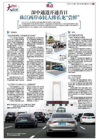 刘先生也难掩激动之情:“我家就在宝安,经常去珠海玩,以后深中通道就是第一首选。”他上周五和妻子从深圳出发到珠海度假,此刻正要返程。“来的时候经过虎门大桥,回去就可以走上崭新的深中通道,很荣幸能吃上‘头啖汤’。”
