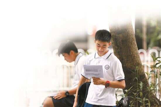 ■开考前,天河中学(花城校区)考点外,考生正在抓紧时间复习。新快报记者 郭思杰/摄(资料图)