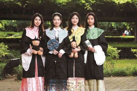 “年轻人追求的国潮穿搭,就是将中国传统服饰风格和现代潮流紧密融合。”在金憓看来,“新中式”学位服的出现,也是当代年轻人敢于创新的体现。