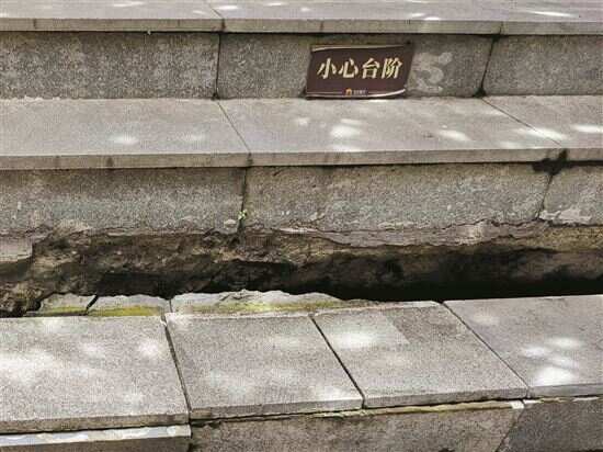 ■台阶出现沉降开裂。