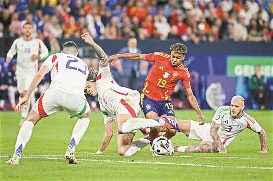 从本届大赛的进程来看,4战全胜打入9球的西班牙似乎没有什么弱点。在放弃了极致传控后,“斗牛士”的攻击非常有效率,21岁的威廉斯和16岁的亚马尔组成“黄金双翼”,不断制造惊喜。