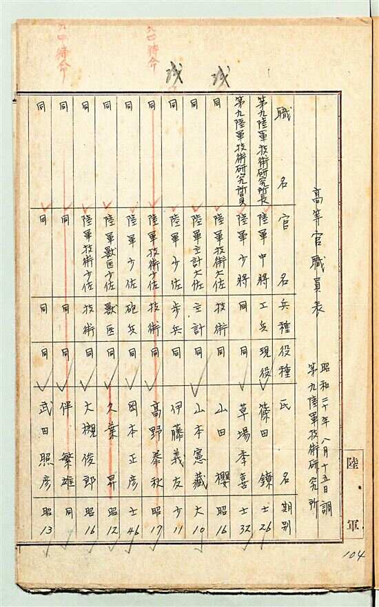■这是日本国立公文书馆藏《陆军第九陆军技术研究所高等官职员表(1945年8月15日制)》原始档案首页。 新华社发