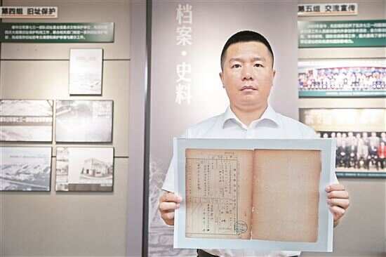 ■7月5日,侵华日军第七三一部队罪证陈列馆研究人员金士成展示731部队林口162支部《身上申告书》(影印件)。新华社发
