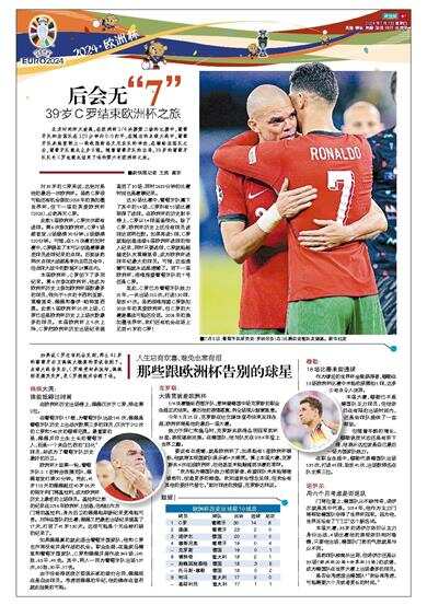 北京时间昨天凌晨,在欧洲杯1/4决赛第二场的比赛中,葡萄牙队和法国队在120分钟内0∶0打平,在随后的点球大战中,葡萄牙队未能复制上一轮战胜斯洛文尼亚队的神迹,在输给法国队之后,葡萄牙队就此止步8强。随着葡萄牙队的出局,39岁的葡萄牙队队长C罗也就此结束了他的第六次欧洲杯之旅。