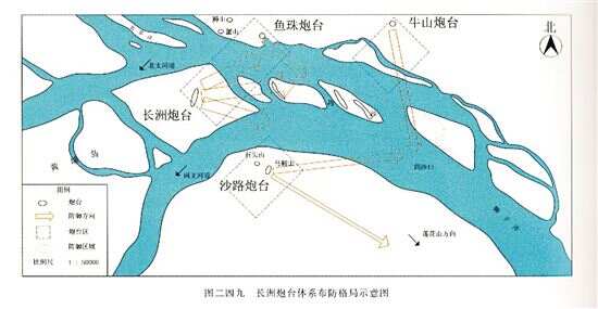 ■长洲炮台体系布防格局示意图。图片来自《广州城防史迹调查与研究》