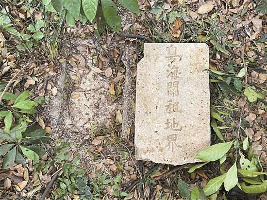 ■粤海关租地界碑被发现时的场景。孔海英供图。目前其正在南汉二陵博物馆“长洲要塞史迹展”展出。