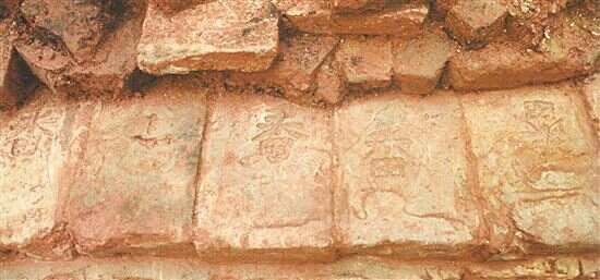 ■广州盘福路宋代城墙墙砖上的“番”字铭文。 图片来自《广州城防史迹调查与研究》