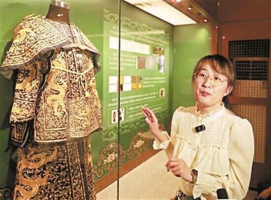 “宫藏永续——沈阳故宫文物保护修复成果展”在沈阳故宫开幕,50余件完成修复的院藏文物集中亮相。展览中展出的“清蓝缎平金龙铜钉棉甲”吸引了不少观众的目光。沈阳故宫博物院保管部主任张莹说:“这件棉甲由金纽扣袢联缀成一整体,为乾隆帝御用大阅甲。修复重点为盘金绣复原,即将金线、银线盘成图案,再用绣线将其钉缝固定于面料上。在修复时,使用钉线法进行金线复位及固定,同时在缺失的部位补充金线,有效解决盘金线脱落等病害问题。”