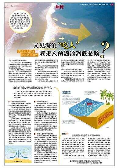 离岸流,学名为“裂流”,是海岸边一股射束似的狭窄而强劲的水流。