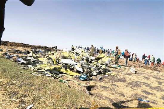 ■2019年3月11日,在埃塞俄比亚首都亚的斯亚贝巴附近,人们聚集在坠机现场。 新华社发