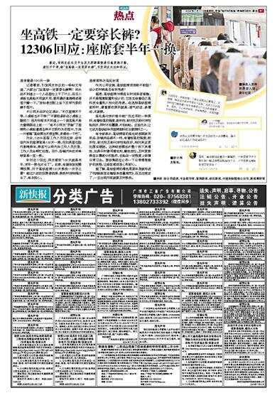 最近,有网友在社交平台发文质疑高铁座位套更换不勤,座位不干净,称“坐高铁一定要穿长裤”,引发网友关注和热议。