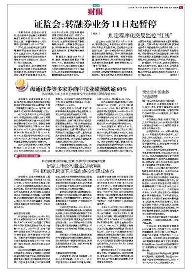 据新华社电 证监会10日宣布,依法批准中证金融公司暂停转融券业务的申请,自2024年7月11日起实施。存量转融券合约可以展期,但不得晚于9月30日了结。