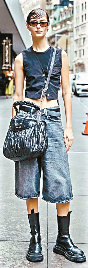 ■马甲适合作背心叠穿,增添利落帅气,下身搭今年同样大热的低腰牛仔半裤,整体造型会非常有少年感。