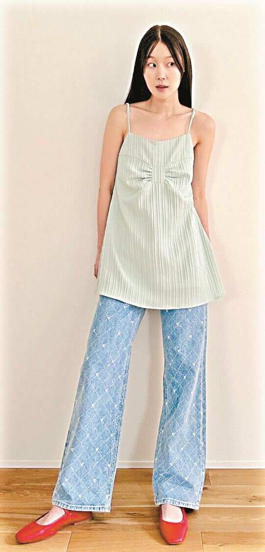 ■造型颜色从浅到深顺次搭配,更能凸显上身细肩带背心带来的轻盈感。