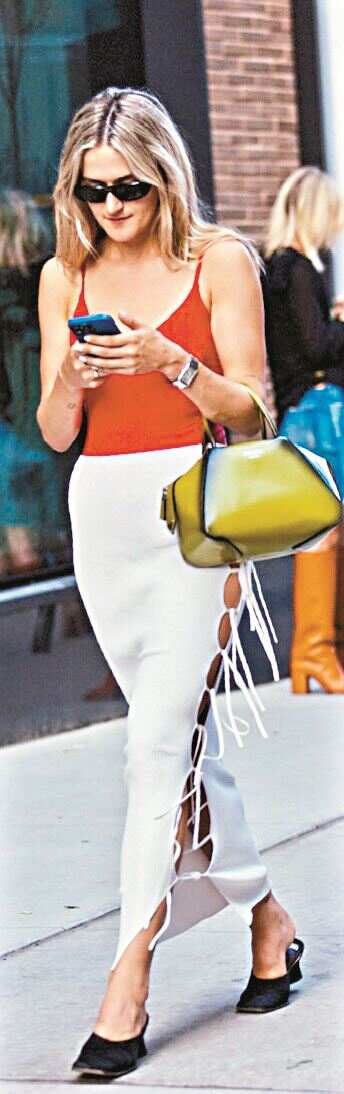 ■单肩背心的热度也蹿到了细肩带背心这边来,但穿起来容易“跑偏”,内衣搭配就能难倒不少人。