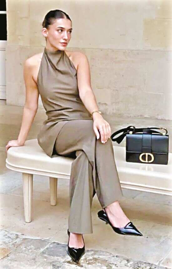 ■一身同色系缎面套装搭配,让流动的优雅之美被放大,搭尖头鞋更能给风格造势。