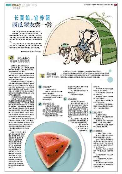 不要笑,也不要嫌弃人家西瓜皮,中医学上西瓜皮有个好听的名字叫“西瓜翠衣”,把西瓜里的瓤和外面带角质层的皮去掉,剩下中间那层如翡翠一般颜色的就是西瓜翠衣,清暑解热、养阴除烦,简单烹制,既美味又可消暑祛燥。