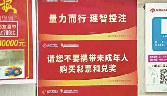 在深圳大大小小的福彩站内,醒目的地方随处可见“量力而行”“理性投注”“禁止向未成年人售彩及兑奖”的标语。时刻提醒购彩者的行为,这是一名福彩代销者的责任。