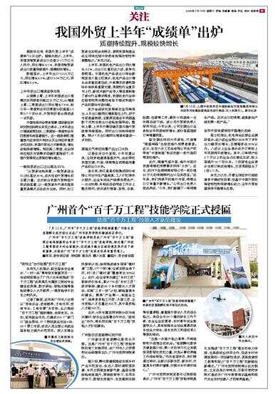7月11日,广州市“百千万工程”技能学院授匾暨广州新农匠首期孵化班开班仪式在广州市技师学院科教城校区举行。