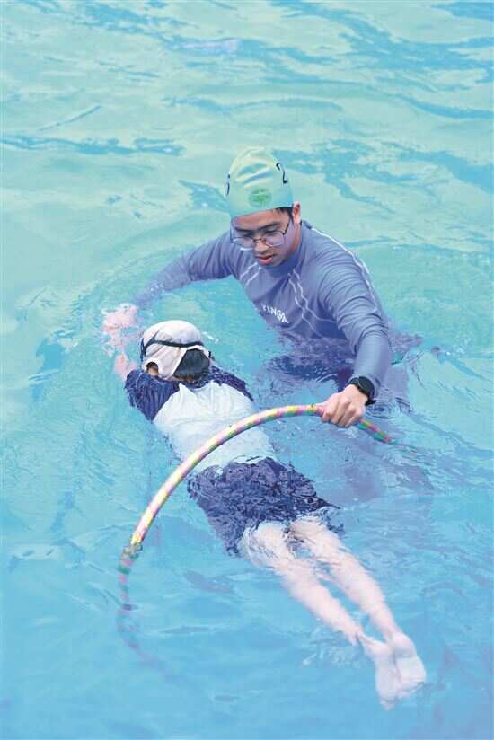 2017年盛夏,思贺镇50名小学高年级“旱鸭子”平生第一次进入游泳池学习泳技,同时掌握水中的自救与互救知识。“效果出乎意料得好,我们当即与镇教育部门签订连续五年培训小学六年级学生的协议,希望通过五年时间,让思贺镇的孩子基本学会游泳。”