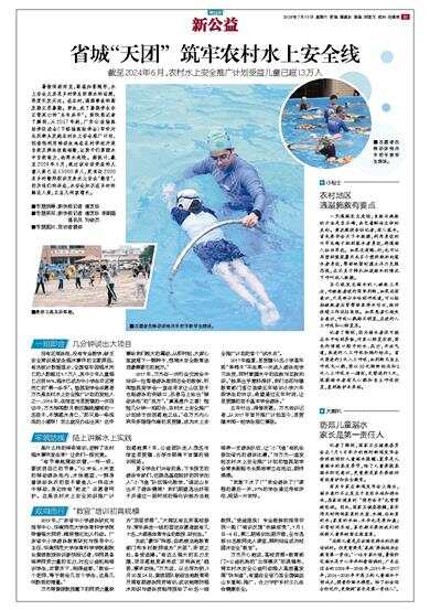暑假悄然而至,高温如影随形,水上安全尤其是乡村学生防溺水的话题,再度引发关注。在农村,遇溺事故的高发期正是暑期。野泳,成了暑期学生非正常死亡的“头号杀手”。新快报记者了解到,从2017年起,广东公益恤孤助学促进会(下称恤孤助学会)即针对此况牵头发起农村水上安全推广计划,创造性利用移动泳池在农村学校开展自救及游泳技能培教,让孩子们掌握水中自救能力,远离水危险。据统计,截至2024年6月,通过该活动受益的儿童人数已达13000多人,更有近2000名乡村教师获训变身水上安全“教官”,因为他们的存在,水安全知识在乡村的触达人数,正呈几何级增长。