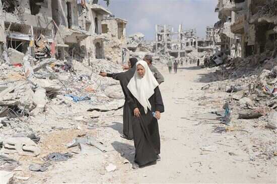 据巴勒斯坦通讯社11日报道,巴勒斯坦医疗和救援人员在以色列军队撤离后的加沙城舒加艾耶社区,发现60多具遗体,另有数十人被困在废墟下。新华社发