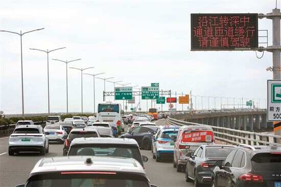 ■6月30日深中通道正式通车首日,交通非常繁忙。