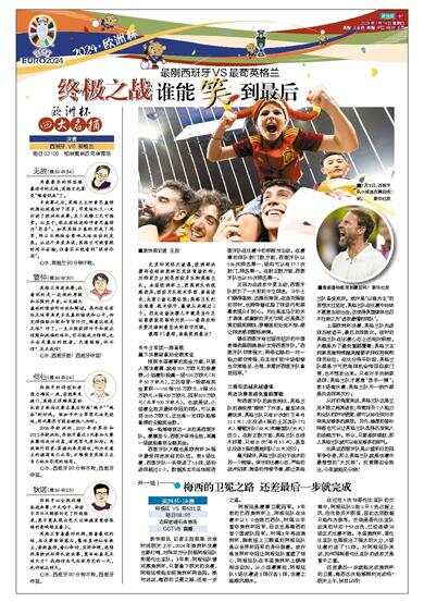 北京时间明天凌晨,欧洲杯决赛将在柏林奥林匹克体育场打响,对阵双方分别是西班牙队和英格兰队。本届欧洲杯上,西英两队的观感迥异,西班牙队战术华丽、崇尚进攻,此前6场比赛全胜;英格兰队打法难看、战术保守,赢球从未超过1个。因此这场决赛几乎就是当今足坛最极致思路的对抗——最奔放的攻势足球和最坚决的防守足球。