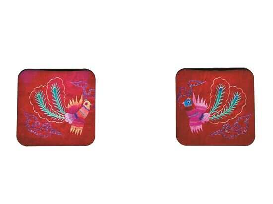 民国,红地绣凤凰纹枕顶(一对)。潘玮倩摄