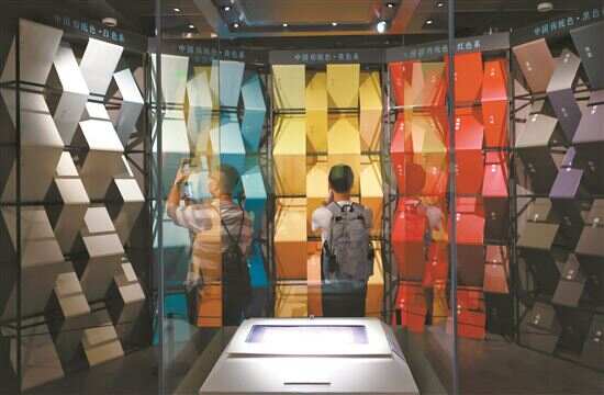 在“枕上添花”展览现场,展陈团队设置了多项动态展示与互动项目。“五彩斑斓——枕顶色彩的选择与搭配”单元中采用短视频与图书相结合的形式为观众介绍中国传统色系,呼应单元枕顶色系主题,帮助观众理解枕顶、枕的色彩搭配效果与色彩的历史文化渊源;展厅内备有枕顶刺绣材料、工具,鼓励观众亲手参与制作织绣,体会枕顶织绣的技法。