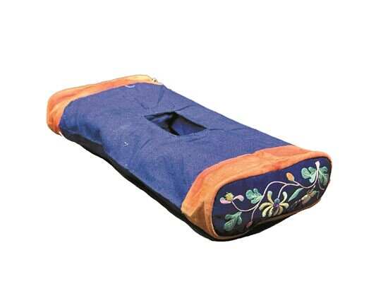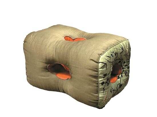 清末,双面丝绸刺绣6孔耳枕,枕上六面皆有耳孔,又称玲珑枕、六合泰枕。 潘玮倩摄