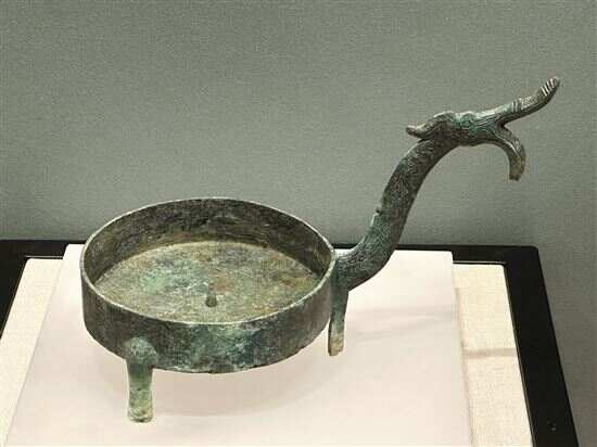 龙首把铜行灯,东汉,1995年5月21日合浦磨囊M14A出土,合浦汉代文化博物馆藏。潘玮倩/摄