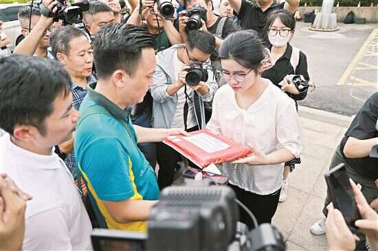 ■7月15日上午,载有4份高考录取通知书的无人机从华南理工大学启航,约30分钟后缓缓降落在广州黄埔区长岭街道一小区,完成全国第一次由无人机全程配送的高考录取通知书。新快报记者 郭晴 龚吉林/摄