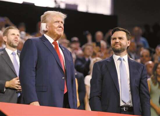 ■7月15日,特朗普(前左)和万斯出席共和党全国代表大会。 新华社发