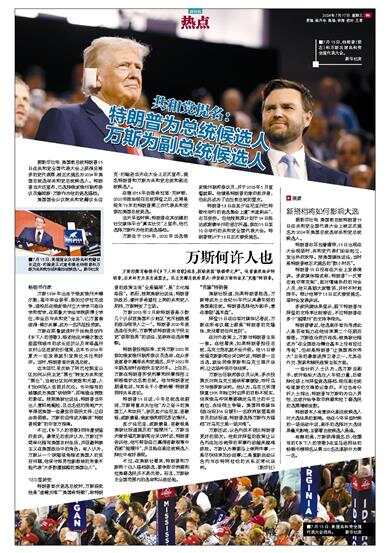 美联社报道,如果特朗普胜选,万斯将成为上世纪50年代以来最年轻的美国副总统。特朗普选择他为副手,意在激励“基本盘”。