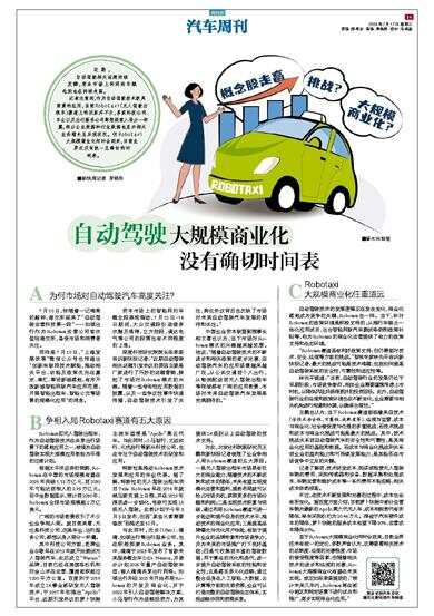 记者注意到,作为自动驾驶技术极具前景的应用,当前Robotaxi(无人驾驶出租车)赛道上的玩家并不少,多家科技公司、车企以及出行服务公司都想提前入局分一杯羹,部分企业数据和行业数据也显示相关业务增长呈乐观状况。但Robotaxi大规模商业化何时会到来,目前业界还没有统一且确切的时间表。