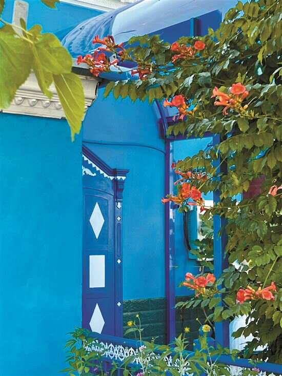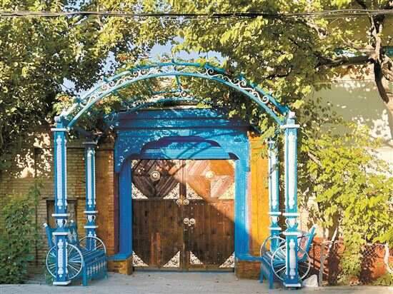 克莱因蓝与白相间的主色调,是所有人提到喀赞其第一时间脑海中出现的画面,这种色彩搭配带着中西亚的特色以及伊宁本地传统文化的影子,也给老城披上了梦幻的面纱。这里所有的民居和街区环境基本上保持着数百年前的风貌,它并不仅仅是一处民俗旅游区,它更多的是自然流露的生活,自带美学气质。