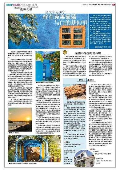 另一家晶萄叶民宿也是才开业没多久的,位于伊犁河老街附近的一个小巷子里,维吾尔族人家的院子,很舒服,夏日微风拂过的时候,树叶轻微的沙沙声与葡萄架下成串的葡萄交织出一曲幽凉的歌,配上标准伊宁蓝的房子,感觉很赞。这家住宿是包含早餐的,很维吾尔族风情,一道凉拌菜叫“皮辣红”,是将洋葱(新疆称“皮牙子”)、西红柿、黄瓜和青椒等切片(丝)拌在一起,清爽可口;奶馕、馓子及各式坚果、干果再搭配上煮鸡蛋和奶茶,坐在葡萄架下慢慢享用,美好的一天便从这样的早餐开始……