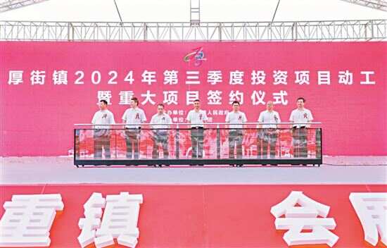 据介绍同,今年上半年,厚街全镇17个省市重大项目完成投资总额22亿元,同比增长237%,增速排名东莞全市前列,有力支撑固定资产投资平稳增长。第三季度,诺丽总部、东创精密、乐嘉文创等9个东莞市重大项目集中动工,将为全年固定资产投资实现“破百亿”目标提供强有力的增量支撑。