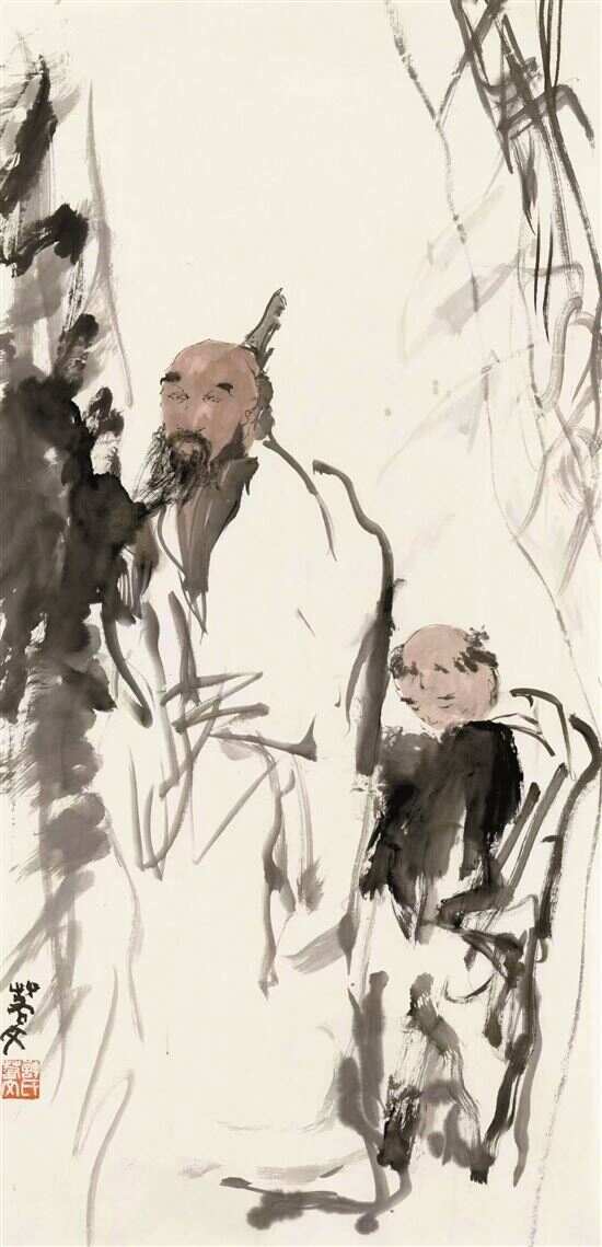 我个人理解的大写意至少有三个标准。首先是人书皆老:对传统的学习与掌握熟练,笔墨老到,穷极一生而研究;第二,书卷气:要气正、非俗、非粗、非壮;第三则返老还童:笔墨追求“生”气,“生”是对老的一种逃离。此外,还要有高涨情绪,最好是“半醉”状态,“半醉”是对理性的突破,返璞归真,或癫或狂,或醉或迷,从初心出发。在有形与无形之间,与天地融为一体,达到物我两忘的境界。