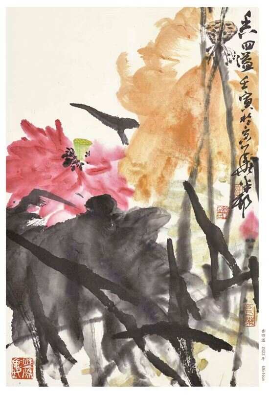 在大写意画的范畴里,诗书画印是中国画一个很重要的评判标准。而“留白”的处理的确是一个核心,这是留给观者思考的空间,甚至让观者在精神层面参与到作者创作的语境中,这一点是中国画独有的艺术特点。中国画的发展主要在于传承与繁荣,从古代的优秀传统中吸取养分,然后结合现代思维转化为新的艺术语言,通过自己对笔墨的理解表现出独特的面貌。无论是大写意手法还是工笔的手法,都只是方法,关键在于个人对笔墨精神的理解与实践。