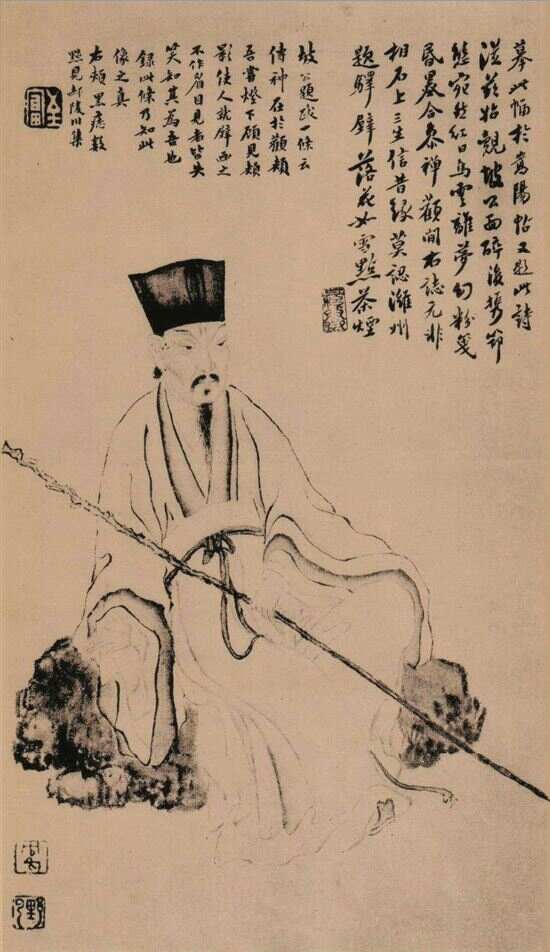 苏轼画像中最著名的,当属李公麟的一件作品。黄庭坚曾这样点评:“庐州李伯时(公麟)近作子瞻(苏轼)按藤杖,坐盘石,极似其醉时意态。此纸妙天下,可乞伯时作一子瞻像,吾辈会聚时,开置席上,如见其人,亦一佳事。”当然,这样的佳作只会珍藏深阁,看得到人不多。可以猜想:后世中,较精的苏轼画像秘藏于官宦家中,而社会上流行的版本则多由民间画师摹画,良莠不齐。