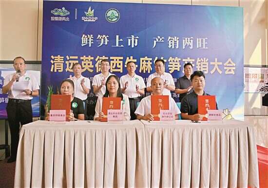 此外,英德市持续深化国企参与本地产业发展机制,不断挖掘各地国企购销需求,以相对稳定的购销渠道带动西牛麻竹笋产业稳健发展。同时,通过推介会、博览会等多种渠道,广泛对外推送西牛麻竹笋产品信息、对接各类采购主体,为本地经营主体提供更多市场机会。在本次大会现场,清远市农业投资集团公司、清远市代销投资有限公司向本地合作社采购麻竹笋原料超16万吨,麻竹笋产品销售量达8万吨,广州鹰金钱集团、深圳茂雄集团、盐津铺子、吉香居食品等一批实力企业与英德市麻竹产业协会签订了产品销售合同,推动“白纸黑字”的政策转化成农村群众能装进钱袋子的“真金白银”。