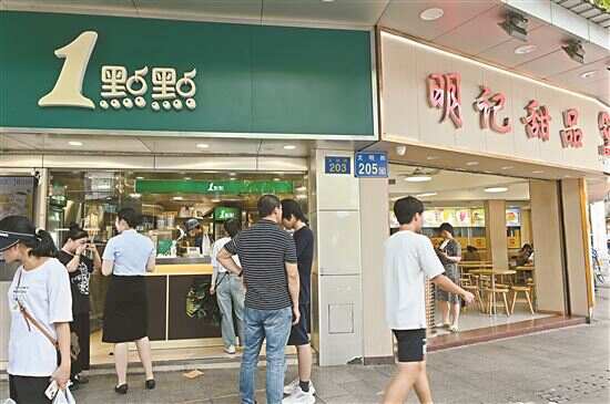 ■明记甜品店与一家奶茶店同在文明路开业。