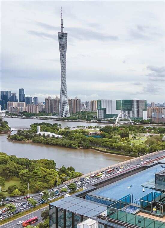 ■广州大道旁的祈福华夏大厦楼顶游泳池,可以眺望广州塔和珠江新城。
