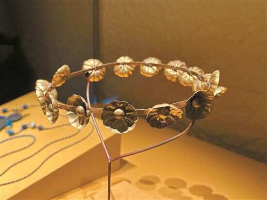 ■带有谢提二世和塔斯沃特王后王名的黄金花冠,金,第19王朝,帝王谷出土,埃及国家博物馆藏。