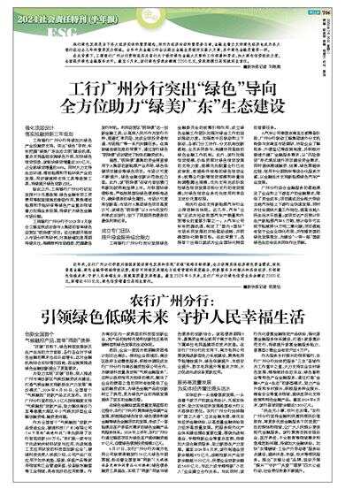 近年来,农行广州分行积极对接国家推动绿色发展和实现“双碳”战略目标部署,全力保障实体经济绿色资金需求,依托普惠金融、绿色金融等领域传统优势,推动可持续发展理念与经营管理的深度融合,积极服务乡村振兴和实体经济、引领绿色低碳未来、守护人民幸福生活、筑就高质量发展根基。截至2024年6月末,农行广州分行绿色信贷业务余额近2000亿元,新增近400亿元,绿色信贷增量位居同业前列。